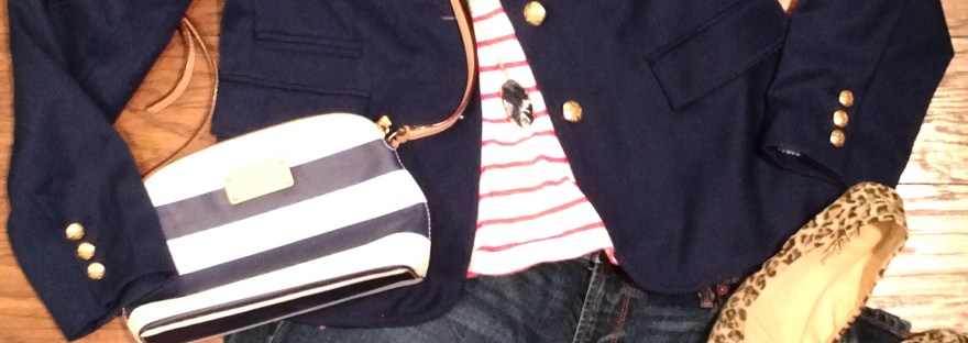 Blazer: Banana Republic, Shirt: J Crew, Jeans: Old Navy, Leopard flats: Lucky Brand, Purse: Kate Spade, Necklace: purchased at a local boutique