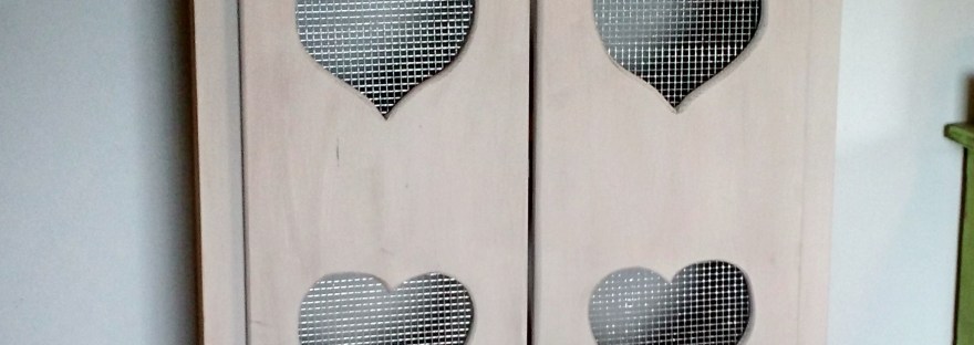 My Aunt Binky has been cleaning out the house she shared with my grandparents recently.  She gave my mother an old pie safe with heart cut-outs that belonged to my grandmother.  We lost my grandma seven years ago, so my mom was very happy to happy a piece of furniture that belonged to her.  It is a very special piece.  My mom decided to use it for sheet storage in her bedroom since she was running out of space in her linen closet.  She asked me to paint the pie safe so it fit more into her style.